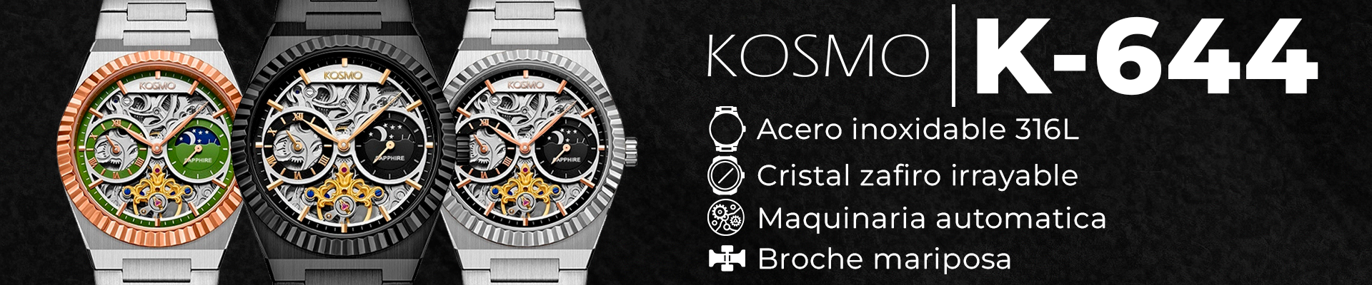 RELOJ KOSMO 501-7 – Acero 316L, Cristal de Zafiro, Esfera Negra , 5ATM