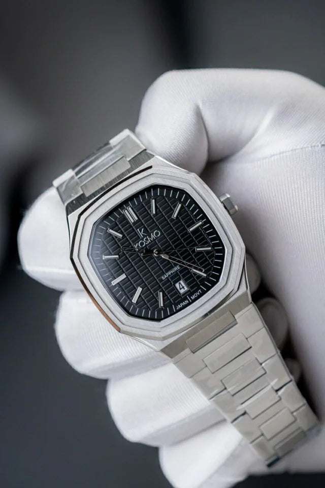 El Kosmo 607-7 combina elegancia y resistencia en un diseño refinado de acero inoxidable plateado con esfera negra. Ideal para quienes buscan estilo y durabilidad en su día a día.
