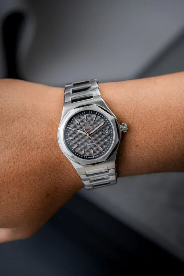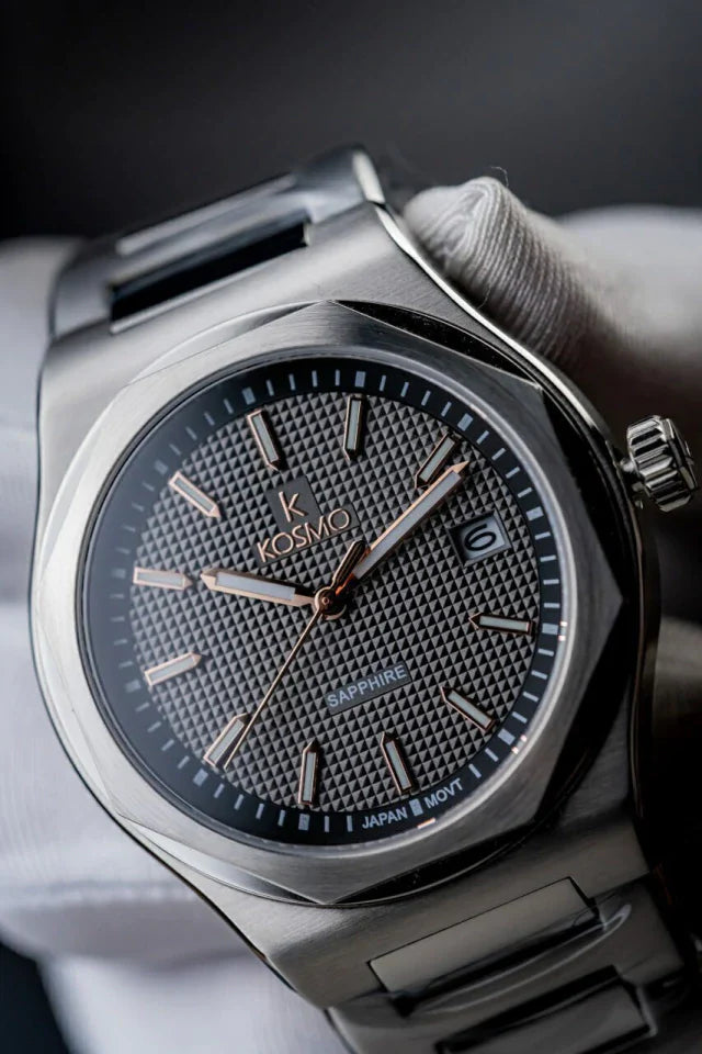Reloj Kosmo 609-7 – Acero 316L Plateado, Esfera Gris con Detalles Rose Gold, Cristal Zafiro