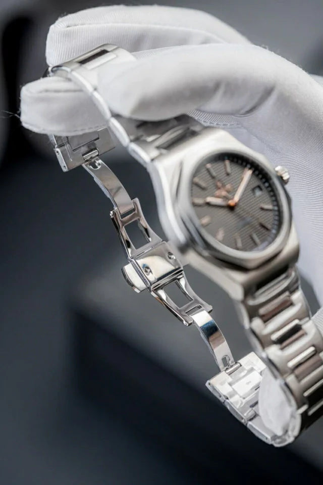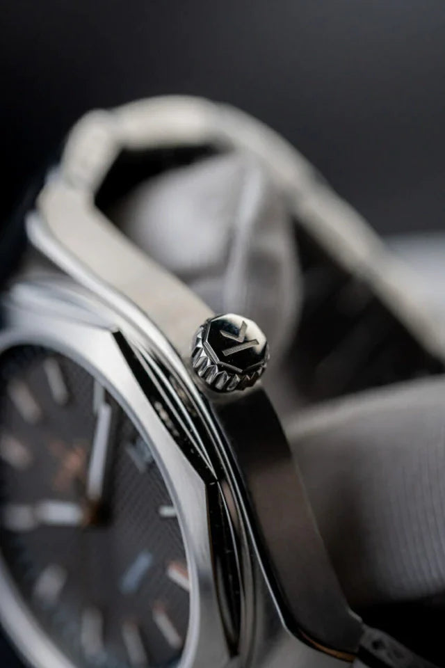 El Kosmo 609-7 combina elegancia y resistencia con un diseño moderno. Su caja de acero inoxidable 316L plateado se complementa con una sofisticada esfera gris y detalles en rose gold. Incorpora cristal zafiro, reconocido por su alta resistencia a rayones.
